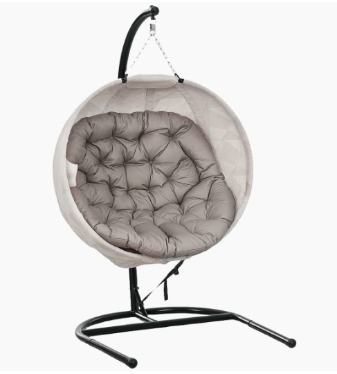 Featuring a wide seat wrapped in geometric-pattern texteline fabric, this swing chair creates a cool, breathable, and cozy hideaway perfect for reading, sipping a drink, or unwinding outdoors. The foldable basket allows easy off-season storage, while a built-in cup holder keeps your beverage conveniently within reach.